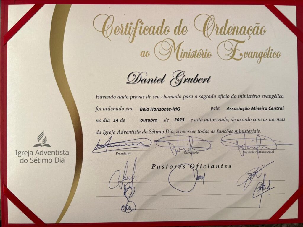 “Me senti honrado em prestigiar esse momento tão especial na vida do meu amigo Daniel Grubert e de sua família, quando foi ordenado ao Ministério Pastoral, com o propósito de seguir cumprindo a Missão do Senhor Jesus. Tive o privilégio de apreender muito com sua liderança empreendedora, visionária e missionária, nos 10 anos que trabalhamos juntos. Sempre nos incentivando e desafiando a dedicar o melhor para o Senhor.” (Reltimann Ribeiro, Tesoureiro Geral ASM, declaração pessoal, 2025).